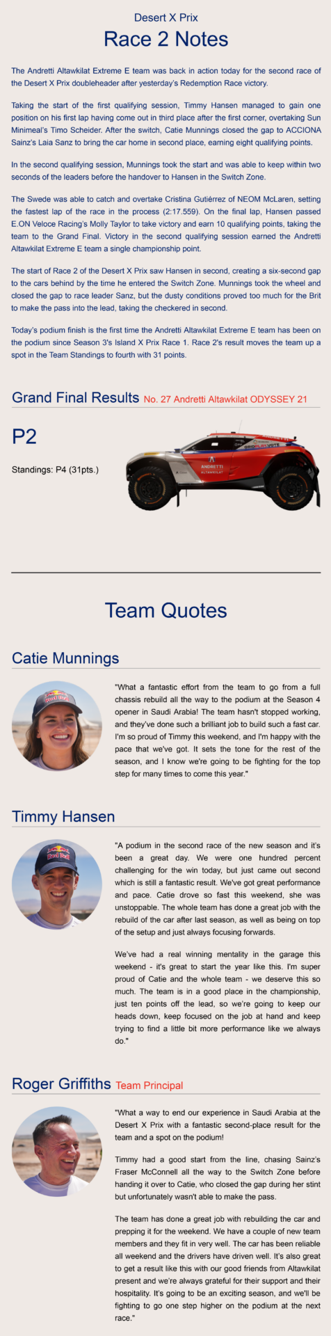 Andretti Extreme E Desert X Prix Race 2 Report