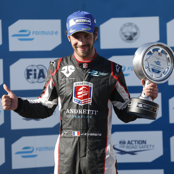 French racing driver Jean-Éric Vergne has brought home the Andretti Formula-E Team’s third FIA Formula-E Championship trophy today with a second-place finish and his fourth successive FanBoost gain.