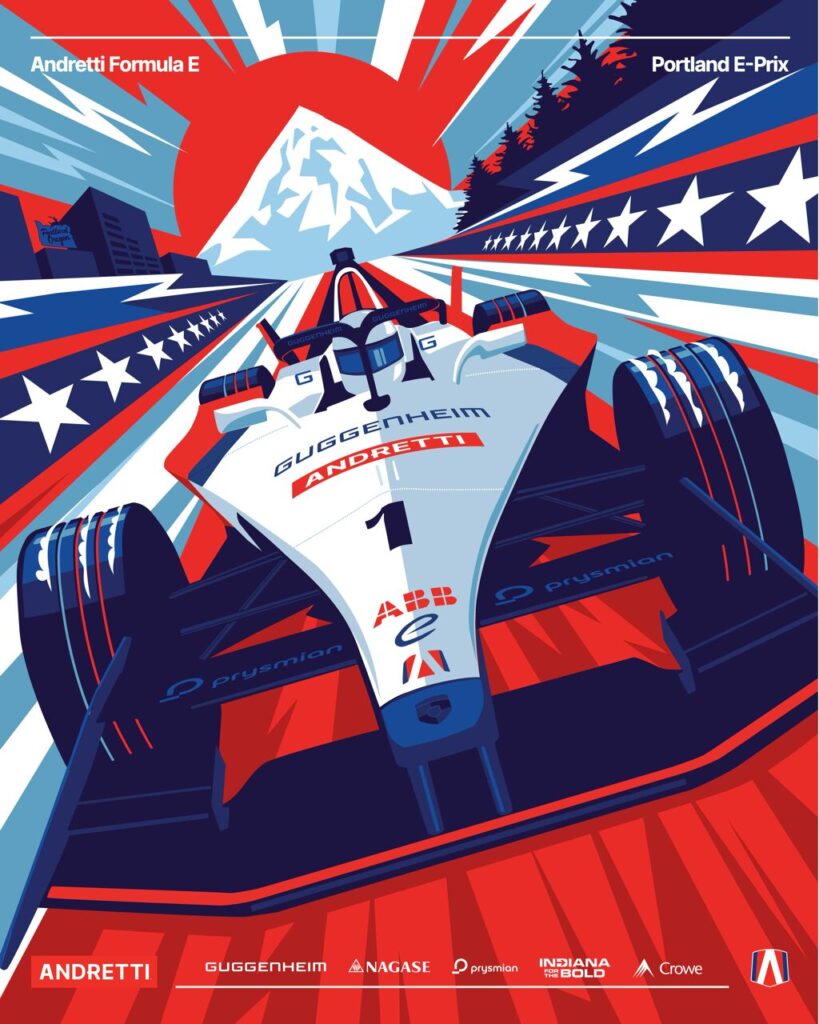 All-American Andretti: Dan Stiles’ Artistic Tribute to Andretti Formula E’s Home Race for the Portland E-Prix Poster