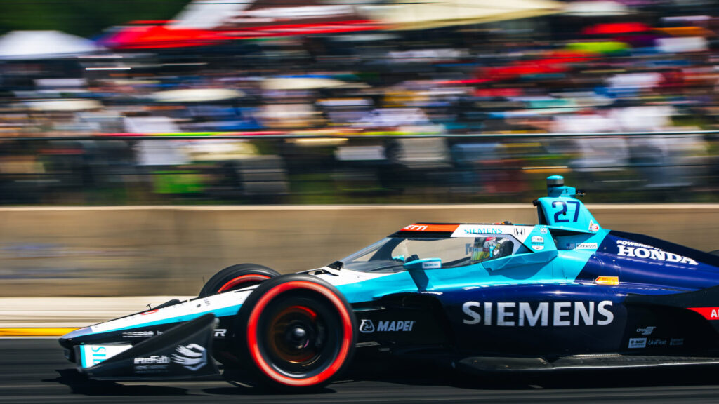 “That was a good result. I will definitely take fourth with the kind of performance that we had there. I mean, man, that was a crazy race. Especially since the first half of it was a split strategy. It was everyone throwing huge divebombs at each other, which caused that split strategy, but the No. 27 Siemens Honda came out with another top five, so I’m stoked with that. I think that was an overachievement today, so I love to see it. Also, I think we kind of leaned toward the red tires today, but neither tire was bad. Firestone came here with a good product, so I’m happy to be running them.”