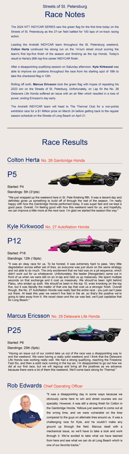 Andretti INDYCAR Grand Prix of St. Petersburg Race Report