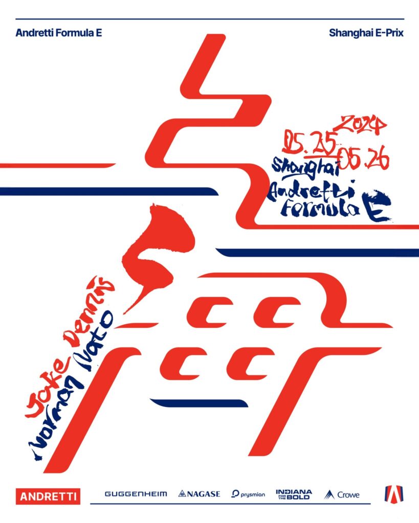 The 2024 Shanghai E-Prix marks an exciting addition to the Formula E calendar, bringing electric racing to the iconic Shanghai International Circuit for the very first time. As part of Andretti Formula E’s ongoing collaboration with local artists, for the Shanghai E-Prix the Indianapolis-based team chose Yijing, a talented graphic designer based in Shanghai, to design the race poster. Living in China’s bustling metropolis, Yijing brings a unique perspective to the project not being too familiar with motorsport. Her design process involved blending traditional Chinese elements with the high-energy atmosphere of Shanghai. Yijing’s design features racetrack-inspired typography and Andretti’s brand colors, enhanced with handwritten elements for a raw, dynamic feel.